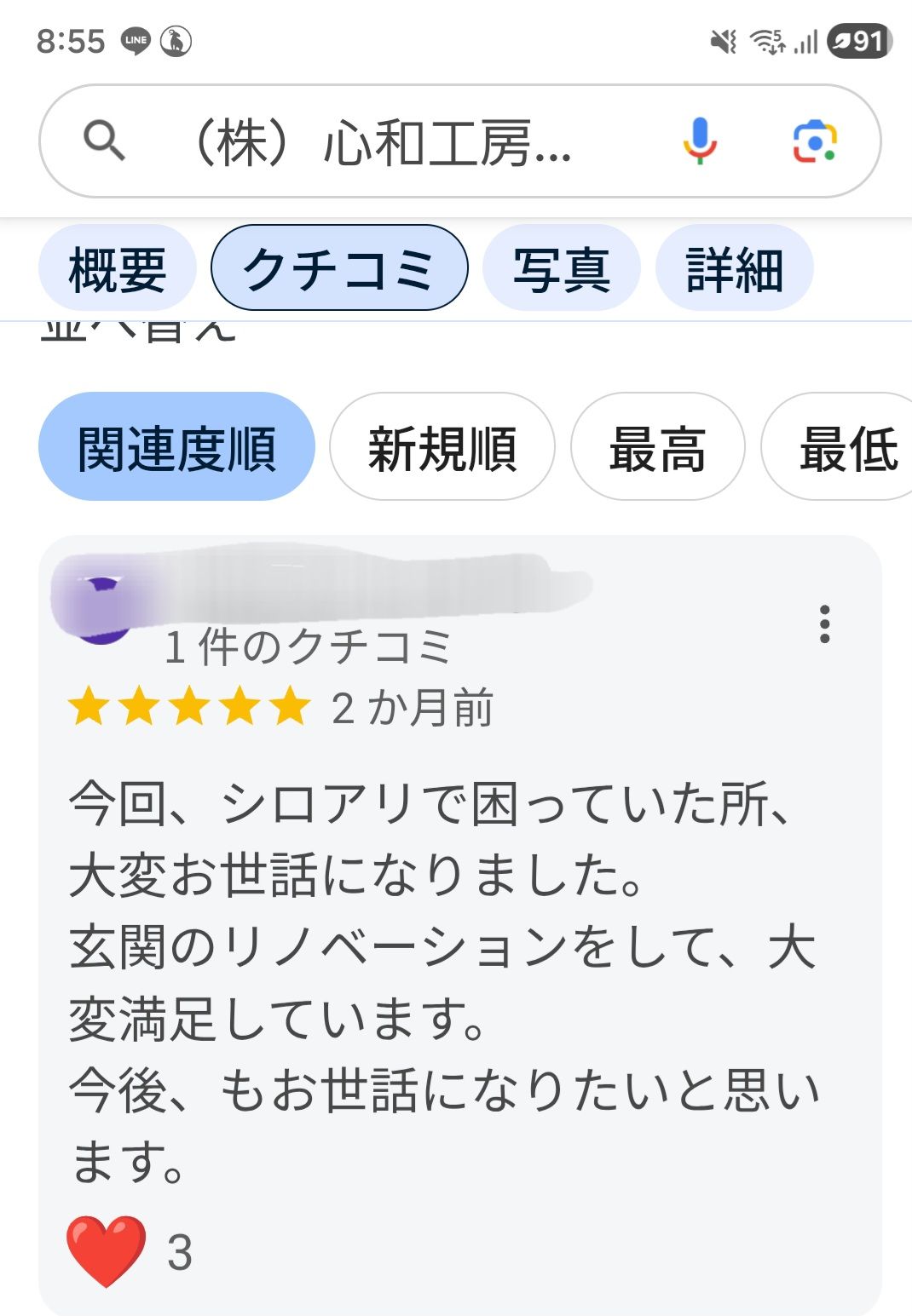 その中でも、最近、Googleの口コミもしてくださる方も...